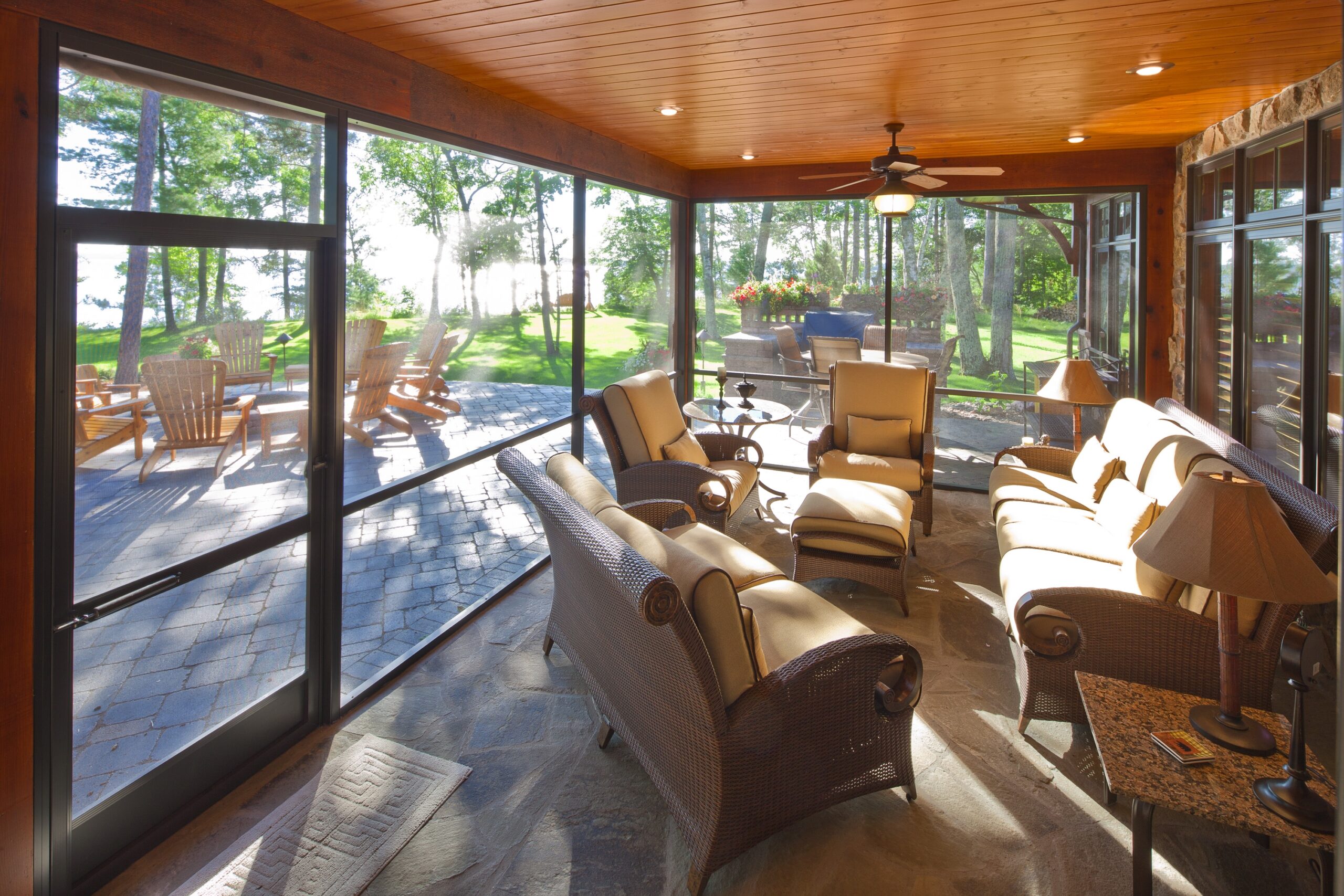It’s worth thinking about outdoor spaces that aren’t strictly a part of the house, too. A stand-alone pergola or gazebo can be a great solution when you have several great views and want to embrace them all. For instance, you might want your home and deck to be up on elevation, and a patio nearby for dining, snacks, drinks, and access to the house. But if you have a great spot that overlooks the lake, and is much closer to it, a separate pergola or gazebo might be a great solution. Including mosquito netting in the design will help keep Minnesota’s state bird away, too.